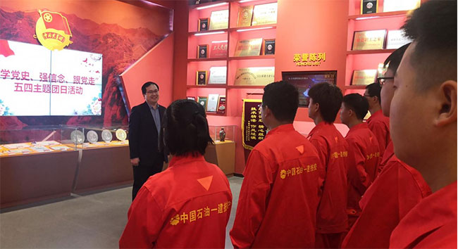 为迎接建党100周年,弘扬五四精神,深入学习贯彻习近平总书记在党史学习教育动员大会上的讲话精神和在清华大学调研时的重要讲话精神。4月30日我校优秀团员学生代表,在一建公司石油精神教育基地展馆参加了由共青团洛阳市委主办、中油一建公司承办的“学党史、强信念、跟党走”五四主题团日示范活动。