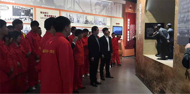 团市委领导与团员同学一同参观石油精神教育基地