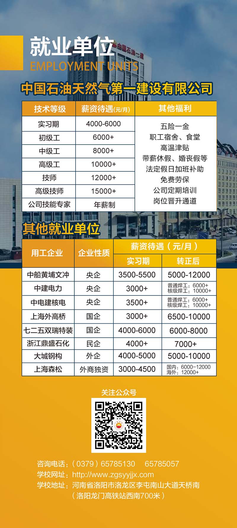 中国石油天然气第一建设有限公司技工学校 电话:65785130(招生办) 65785057(就业科) 地址:洛阳市洛龙区南山大道 网址:www.zgsyyjjx.com