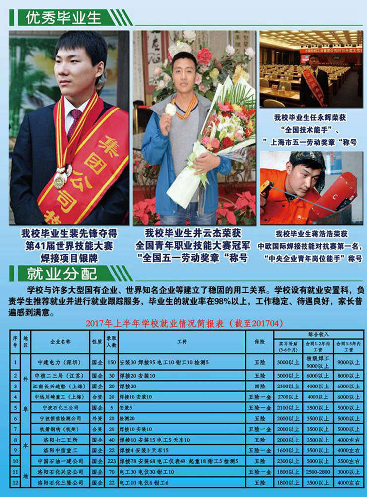 中国石油天然气第一建设有限公司技工学校 电话:65785130(招生办) 65785057(就业科) 地址:洛阳市洛龙区南山大道 网址:www.zgsyyjjx.com