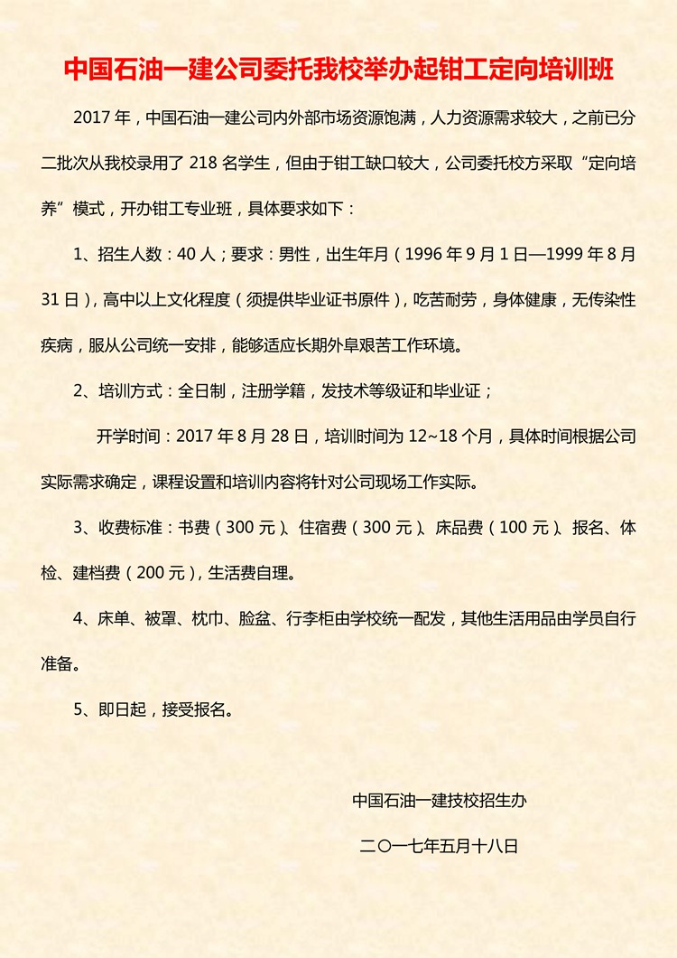 版权:中国石油天然气第一建设有限公司技工学校 来校线路:洛阳市洛龙区南山大道南侧(李屯特大桥东400米),高铁洛阳龙门站西南1200米 技术支持:百事通 豫ICP备17042345号-2