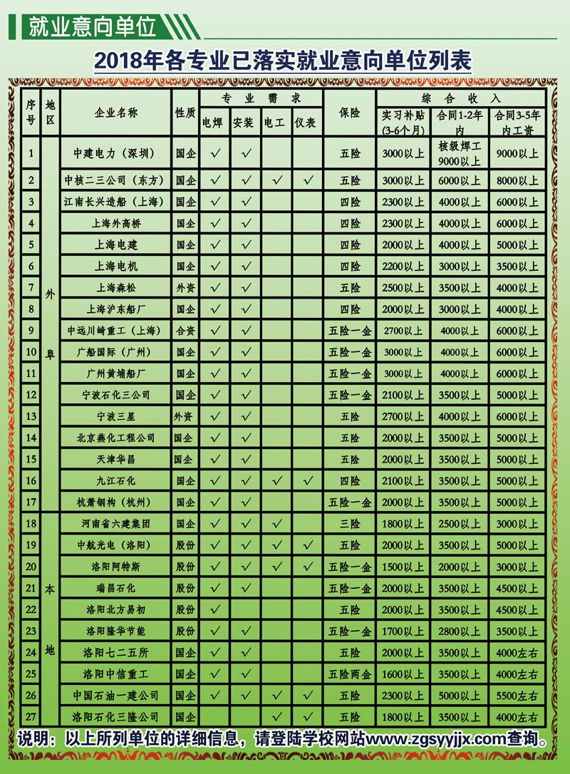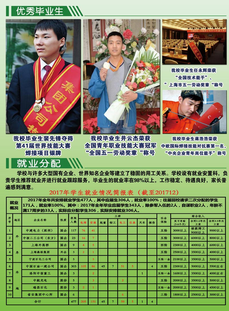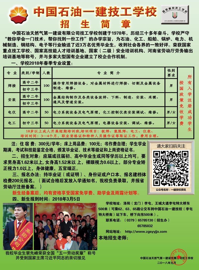 中国石油天然气第一建设有限公司技工学校 电话:65785130(招生办) 65785057(就业科) 地址:洛阳市洛龙区南山大道 网址:www.zgsyyjjx.com