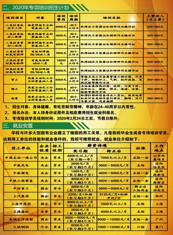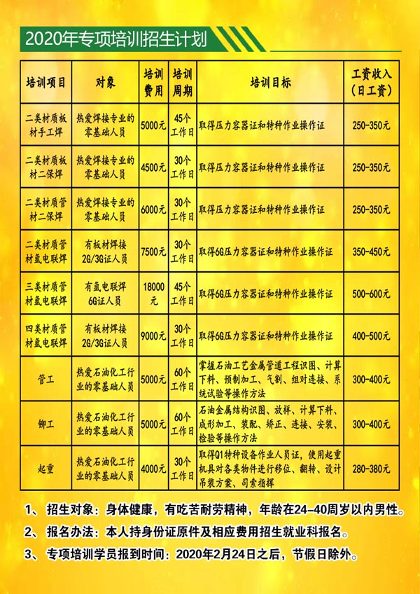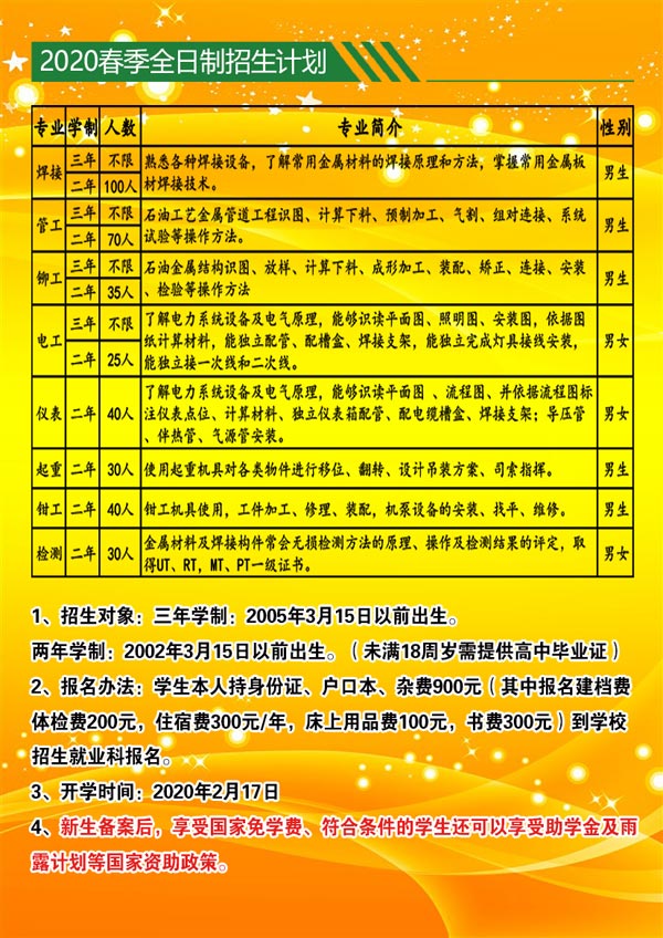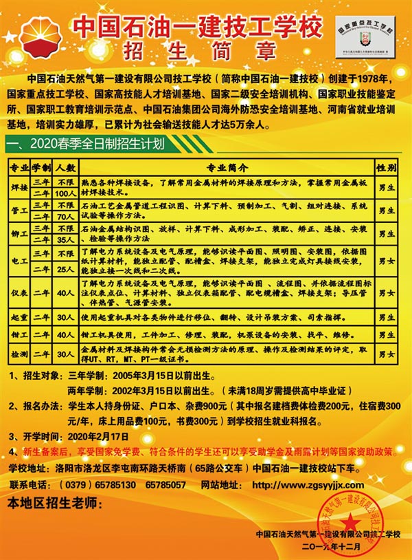 中油一建技校2020年春季招生简章